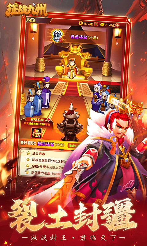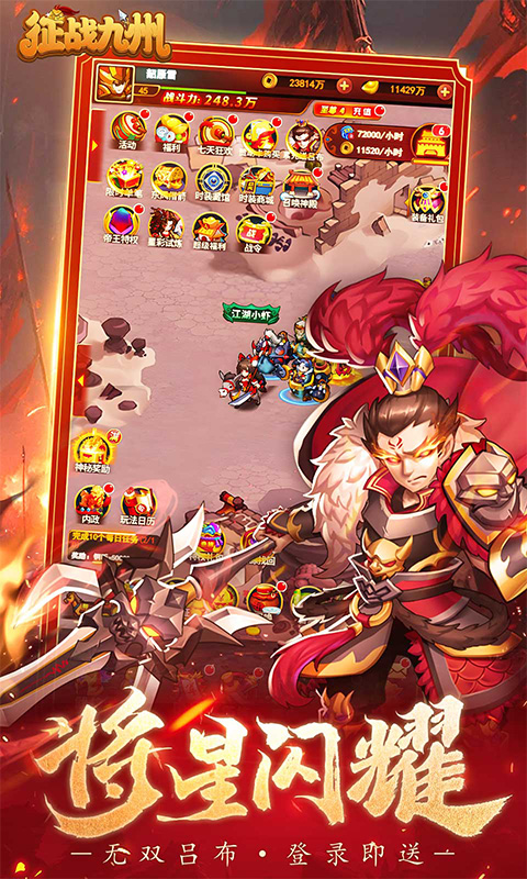 征战九州(0.1折帝王GM神权)》是一款深度三国的放置卡牌手游。让你梦回那个烽火连天的三国时代,再次扮演一位主公,征战乱世,你将从一个白手起家的创业者开始,率领招募的武将,运筹帷幄之中,决胜千里之外。巧妙排兵布阵,攻城掠地,横扫四方,与各路好强一决高下,一步步拓展霸业,倾覆天下!
