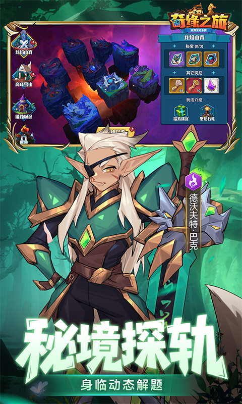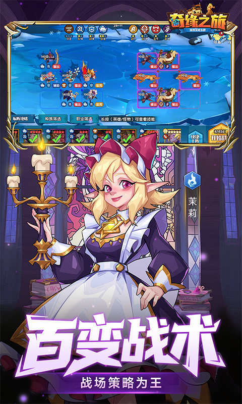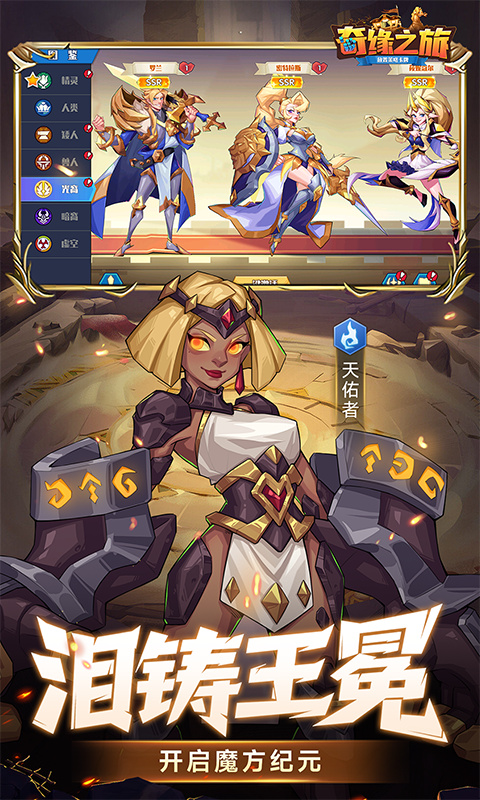 《奇缘之旅》是一款奇幻美式彩漫绘风风格的三棋盘策略放置卡牌。 有策略,三棋盘战场,六大种族+四大职业羁绊至上,随心自创流派; 有放置,关卡首日免费解锁一键通关,中期上线旅行管家直接托管解放双手~